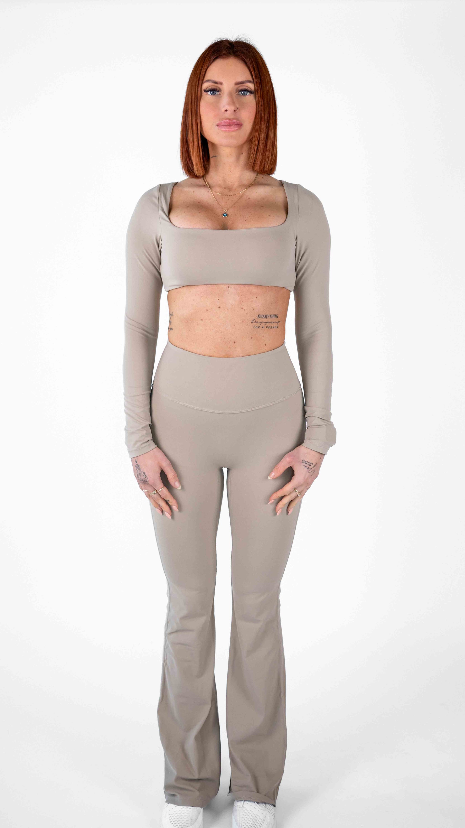 Découvrez le Joyce Flair, la variante chic et tendance de notre populaire ensemble Joyce. Avec son haut ajusté à manches longues et sa coupe carrée élégante, il révèle subtilement votre silhouette tout en offrant une couverture parfaite. Le pantalon évasé à taille haute présente une coupe évasée ultra tendance, affinant la taille et allongeant la silhouette avec élégance.