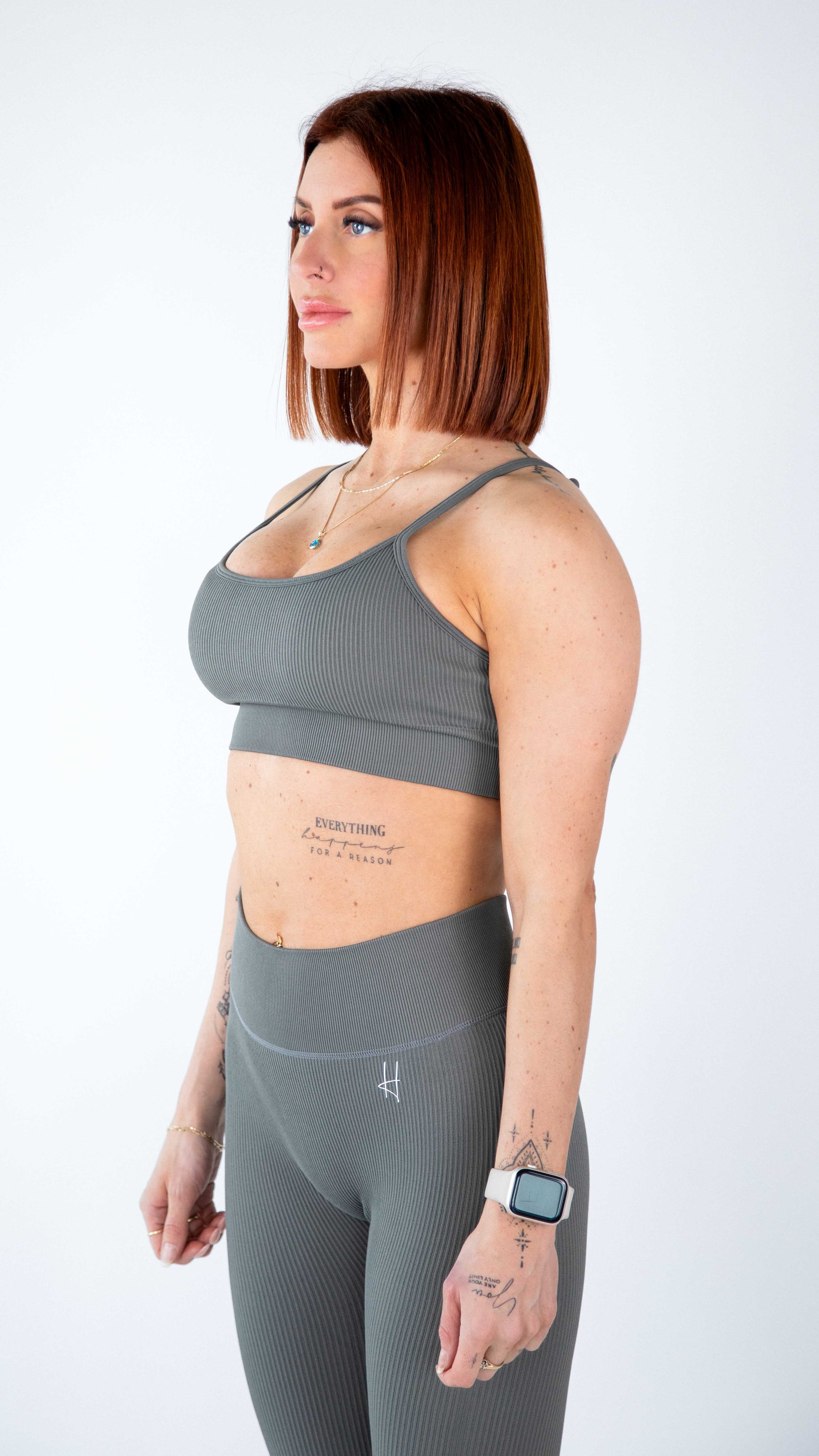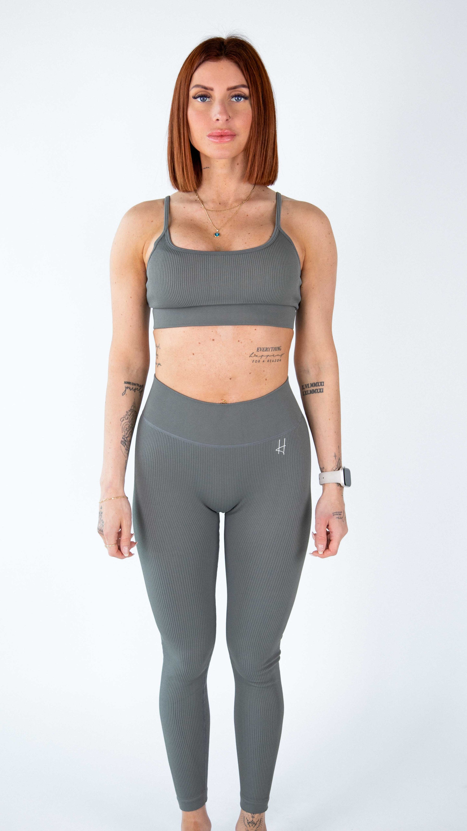 L'ensemble Lara séduit par sa simplicité raffinée et son confort optimal. Sa brassière minimaliste à bretelles fines adjustables et son legging côtelé taille haute vous offrent une sensation de douceur et un maintien parfait tout au long de vos activités.