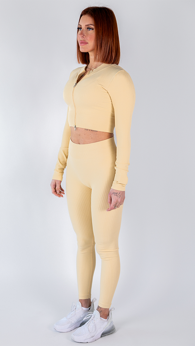 Découvrez la douceur absolue avec l'ensemble Lily, conçu pour offrir un confort exceptionnel tout en restant élégant et tendance. Sa veste courte avec fermeture éclair combinée au legging taille haute vous donne une allure sportive et sophistiquée.