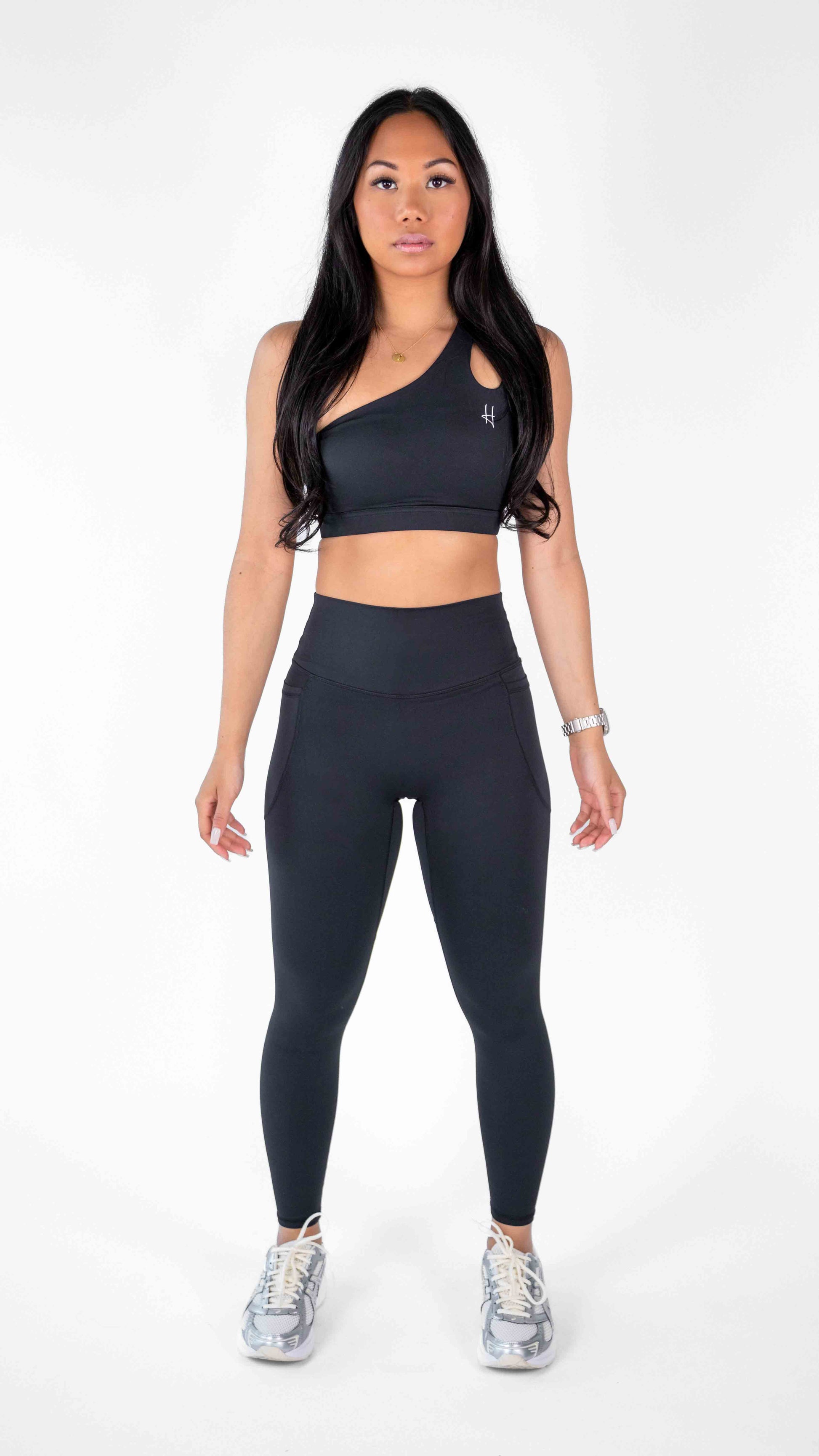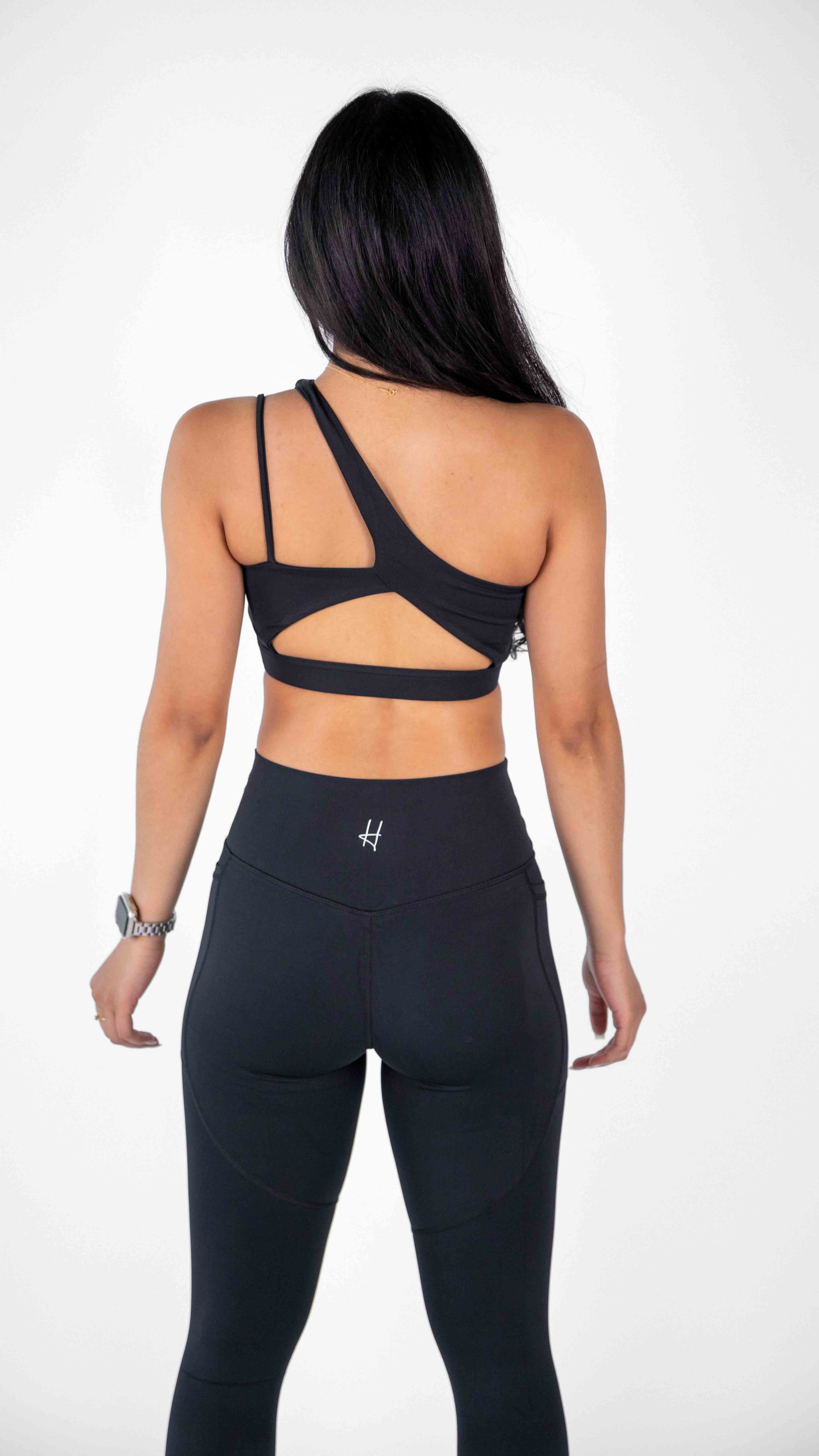 - Brassière asymétrique à une épaule, avec découpe tendance au dos pour un style audacieux.