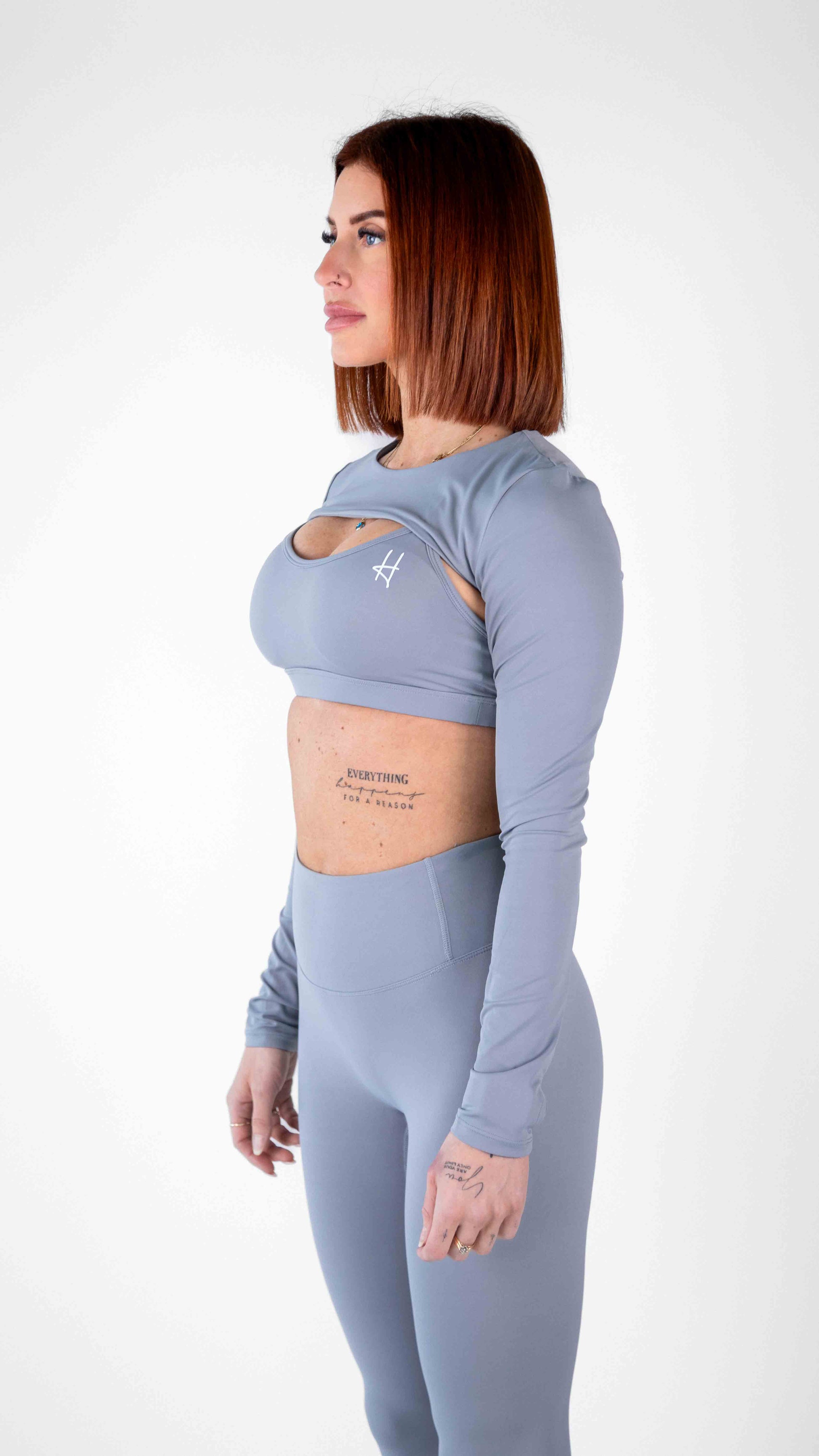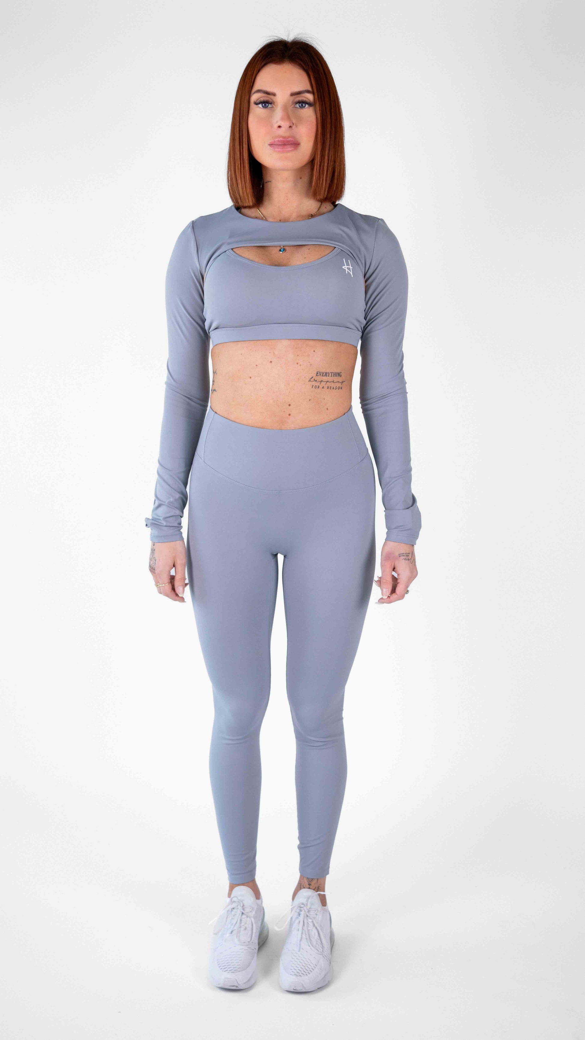 Découvrez l'ensemble Priscile, un modèle audacieux et moderne conçu pour les femmes actives qui aiment se démarquer. Cet ensemble unique se compose d'une brassière sportive accompagnée d'un haut court à manches longues avec une découpe subtile à l'avant et un design sophistiqué au dos, révélant délicatement la peau pour une touche originale. Le legging taille haute assorti, parfaitement ajusté, met en valeur les courbes tout en assurant un confort optimal.