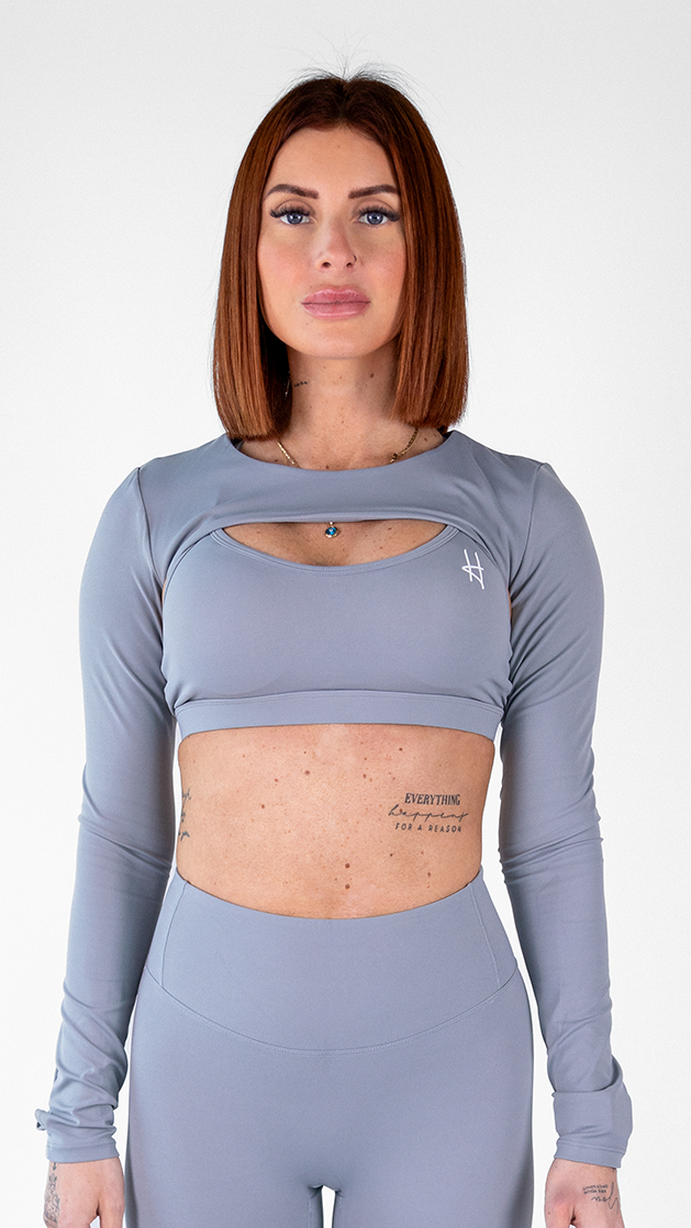 Découvrez le Top Priscile, un modèle audacieux et moderne conçu pour les femmes actives qui aiment se démarquer. Cet ensemble unique se compose d'une brassière sportive accompagnée d'un haut court à manches longues avec une découpe subtile à l'avant et un design sophistiqué au dos, révélant délicatement la peau pour une touche originale.