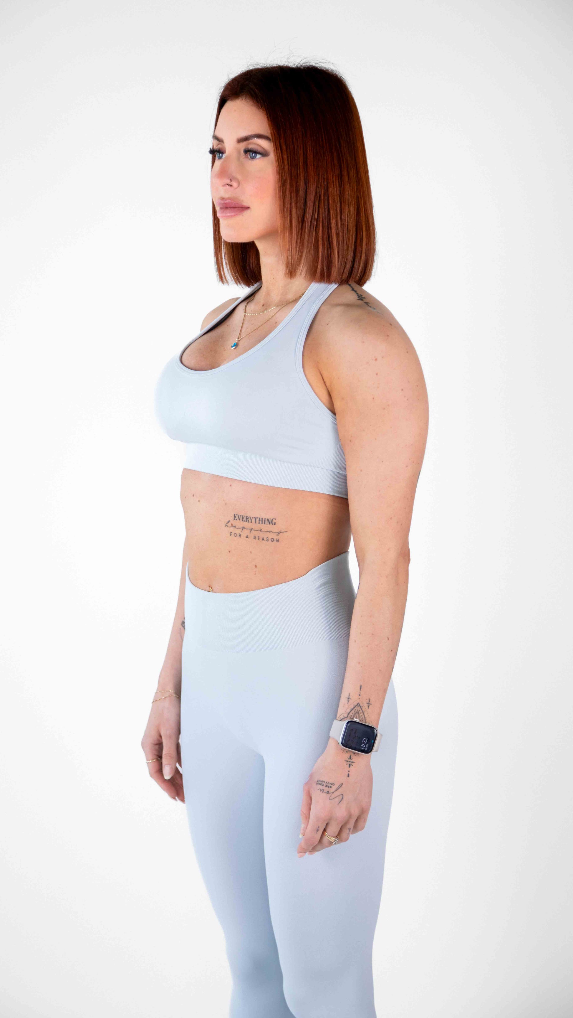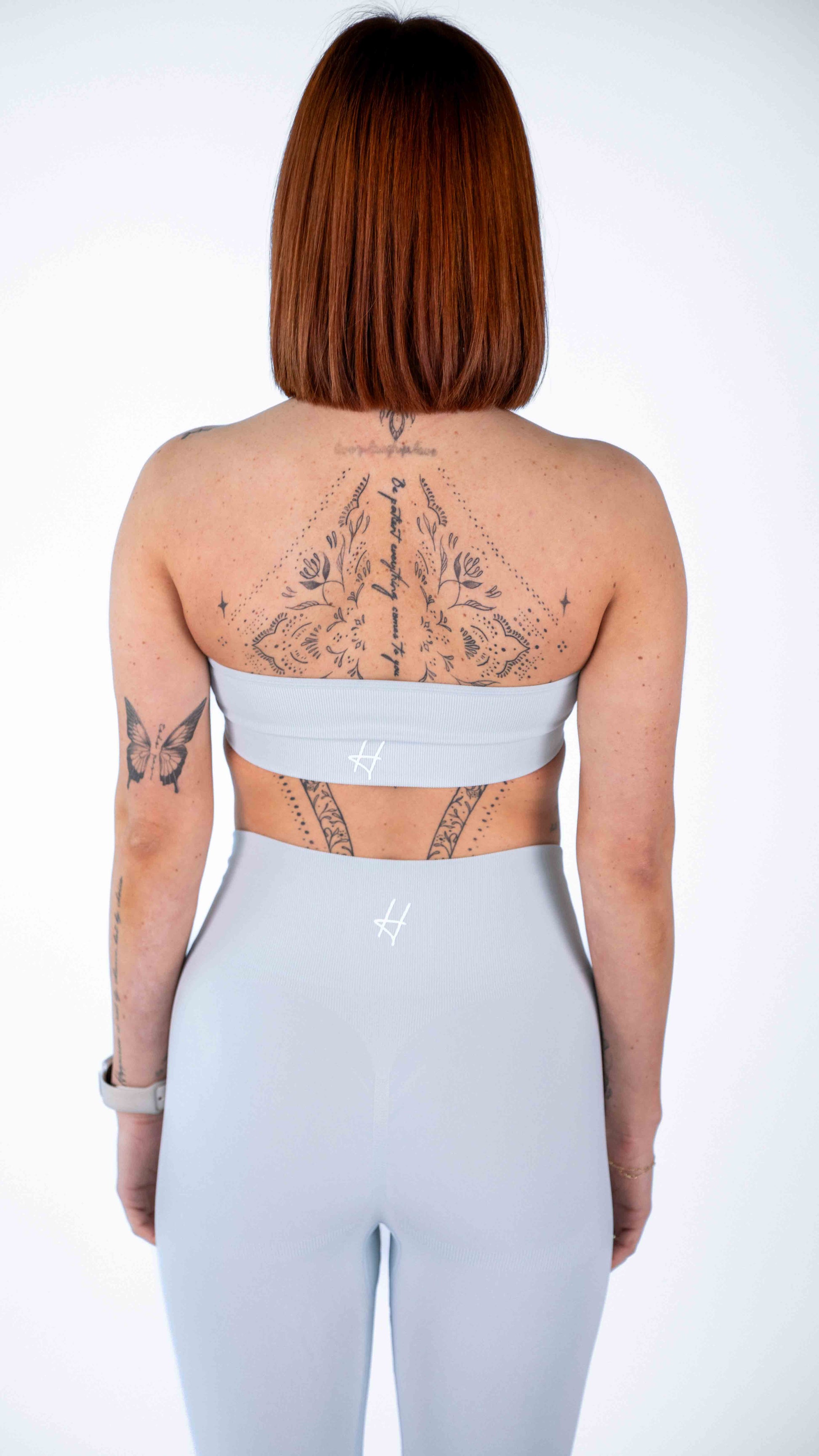 - Open-back minimalist sports bra, providing gentle and breathable support.