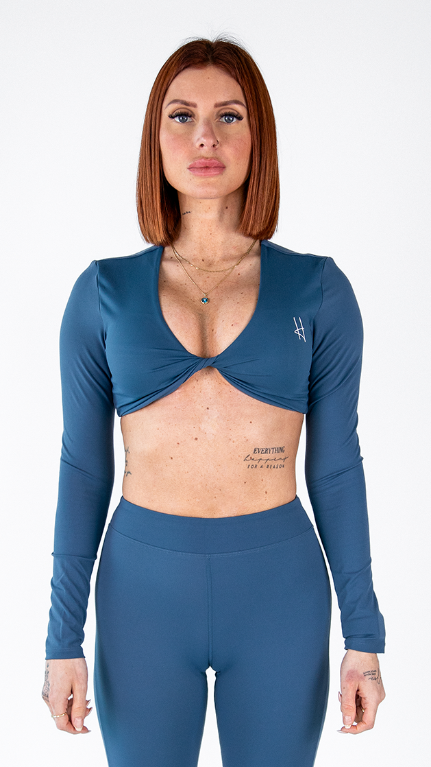Twist-Front Cropped Long Sleeve Top: sophisticated and feminine style, perfect for everyday wear or sports sessions.